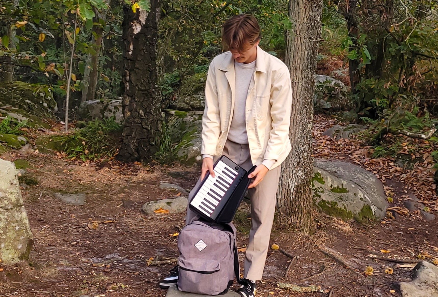 Slim and lightweight, the Voyage is a portable piano keyboard that will fit in your backpack or
